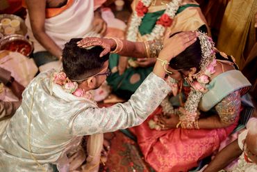 Bride smiling during Tamil wedding ceremony in Chennai – VFR Studios